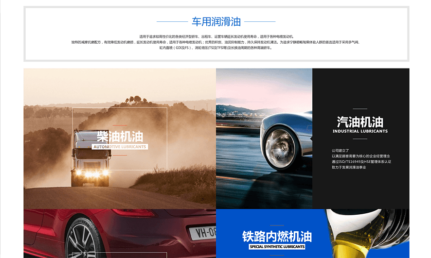 長城潤滑油官網(wǎng)擺脫單一的宣傳功能,專注于打造集品牌展示、產(chǎn)品營銷、用戶服務(wù)、市場銷售于一體的信息化平臺,
