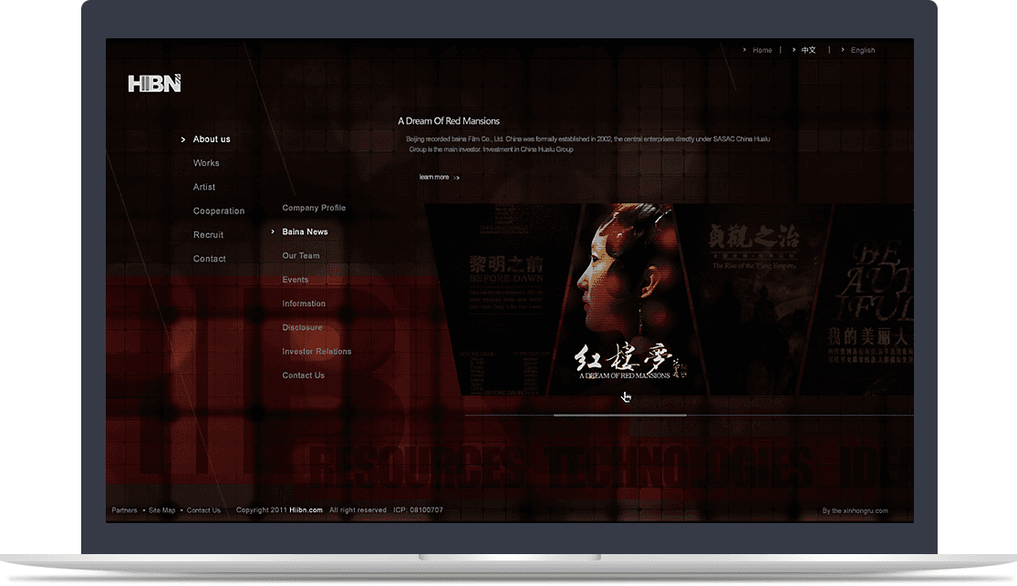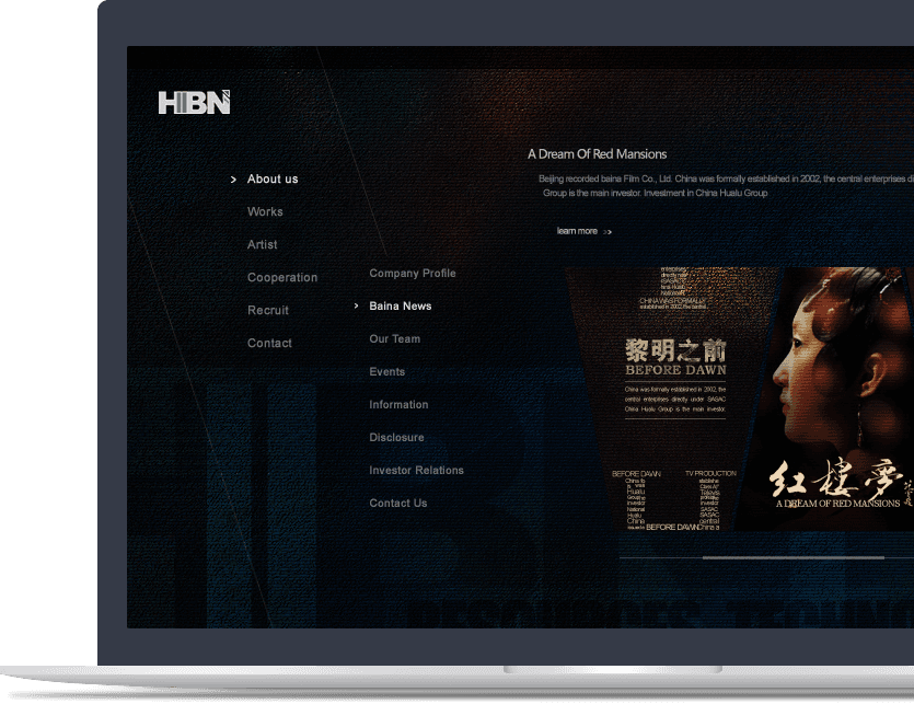 首頁banner進行藝術(shù)化創(chuàng)作,通過輪播切換的方式展示華錄百納的知名作品,以作品帶動品牌,強化企業(yè)品牌價值