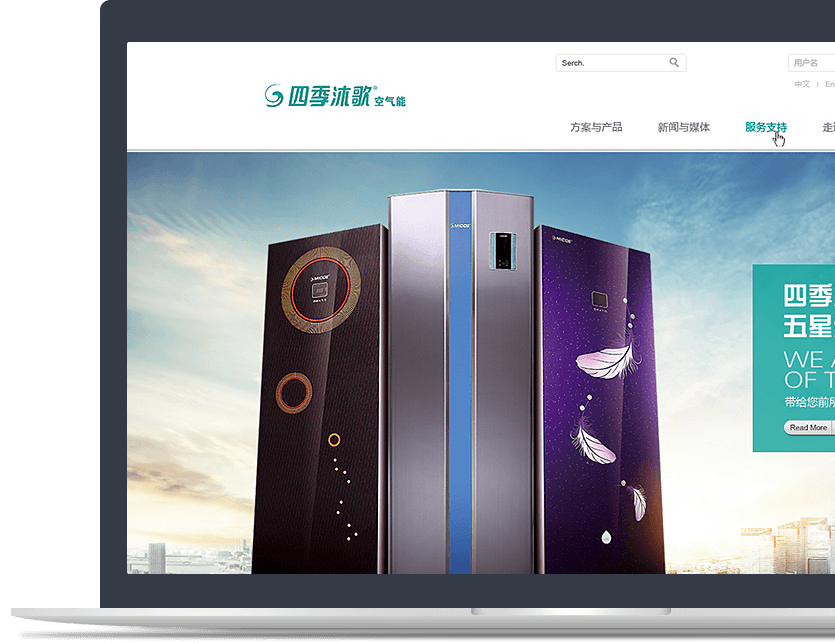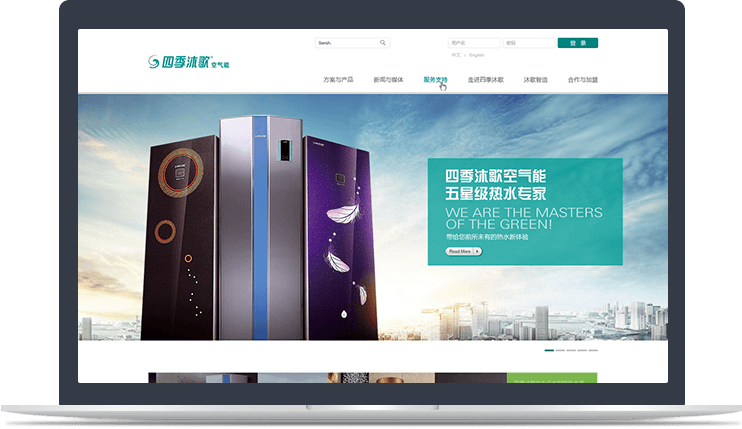 官網(wǎng)著力表現(xiàn)四季沐歌綠色能源產(chǎn)業(yè)的蓬勃朝氣和社會責任,呈現(xiàn)出科技感、現(xiàn)代感