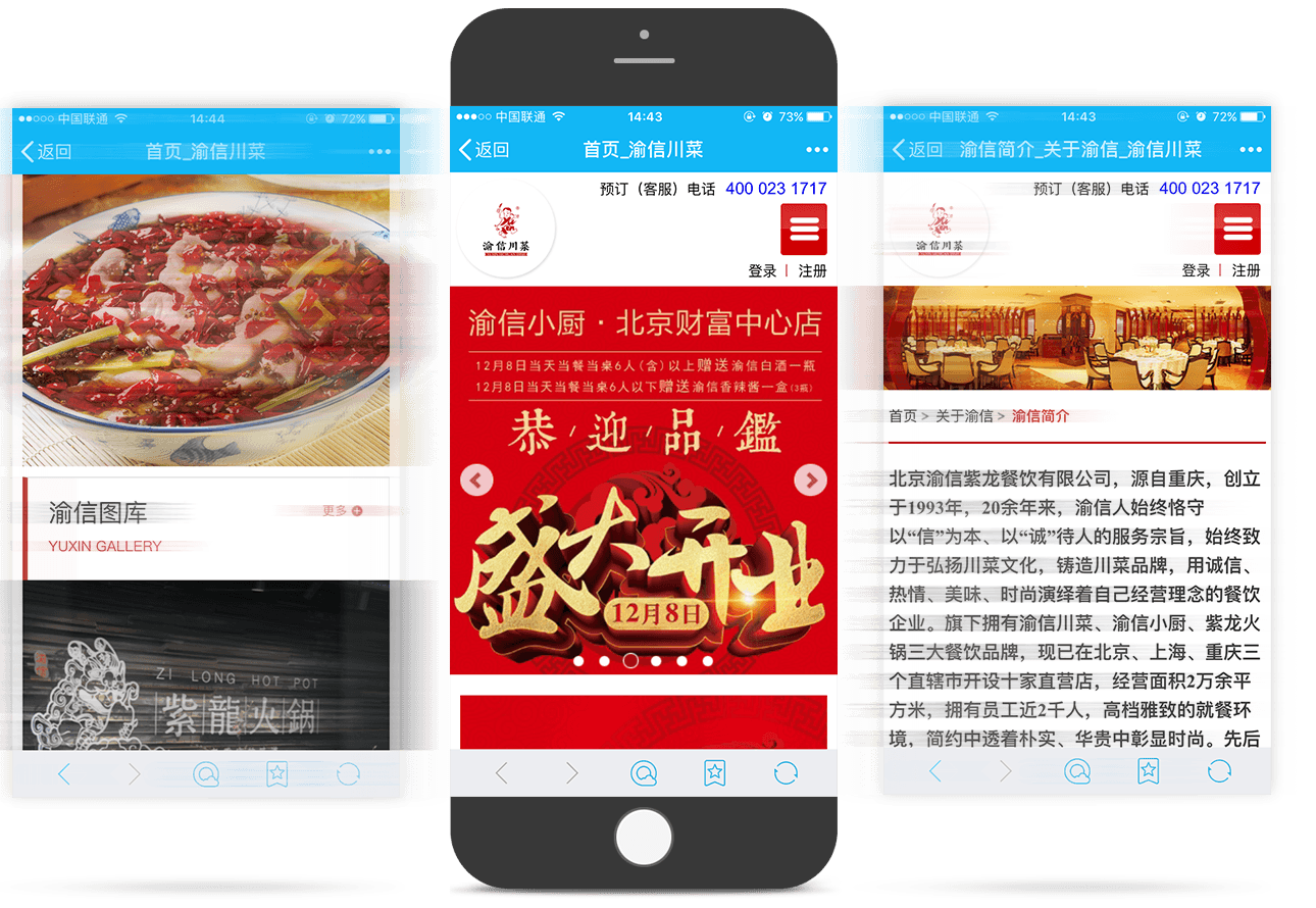 渝信川菜官網(wǎng)整合各地分店信息與數(shù)據(jù),實(shí)現(xiàn)店面的統(tǒng)一化管理,具體包括門店查詢、座位預(yù)訂、會員互動等服務(wù)功能,全面提升用戶體驗(yàn)。