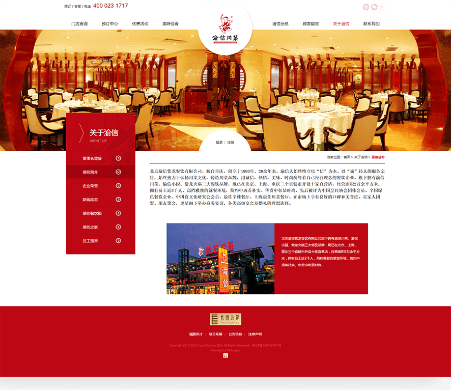 渝信川菜作為極具地方特色的知名餐飲企業(yè),其官網(wǎng)形象與品牌定位保持高度一致,以紅色為主