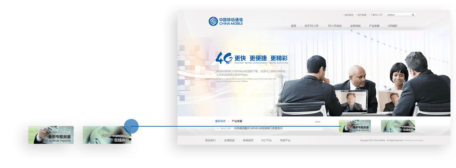 新鴻儒為中國移動提供整體的官網(wǎng)建設(shè)服務(wù),從前期的策劃到設(shè)計、制作、開發(fā)以及運維,
