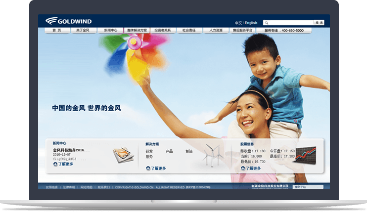 網(wǎng)站整體設(shè)計(jì)契合企業(yè)的領(lǐng)域?qū)傩裕骖櫰放婆c產(chǎn)品雙重需求,視覺效果簡潔大氣,成 功塑造金風(fēng)科技創(chuàng)新、科技、國際化的品牌形象。