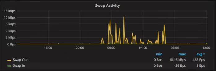 如圖所示,如果你看到有大于 1MB 每秒的持續(xù)交換活動的話,您就需要減少緩沖池的大小了,或者使用其他的內(nèi)存。
