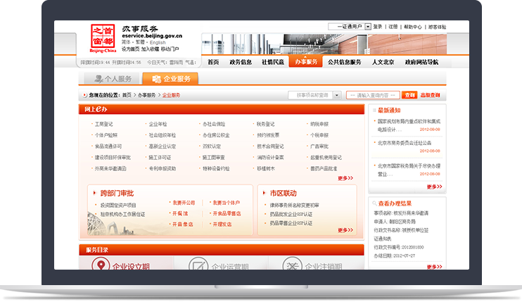 首都之窗辦事服務(wù)頻道作為政府門戶網(wǎng)站最重要、最常用的平臺,信息量大,用戶需求復雜,新鴻儒精密梳理用戶訪問邏輯,將網(wǎng)上辦事流程實現(xiàn)最簡化,極大的方便了群眾。首都之窗至今連續(xù)保持政府網(wǎng)站評比排名第一。