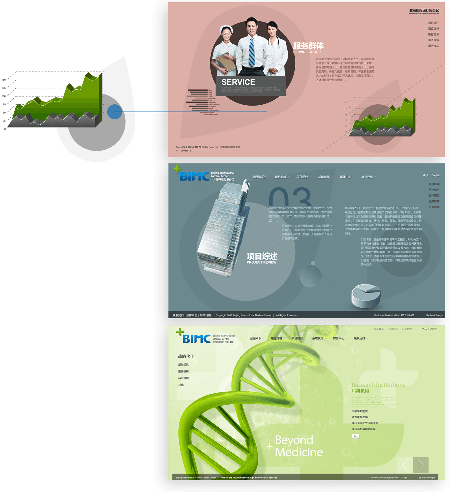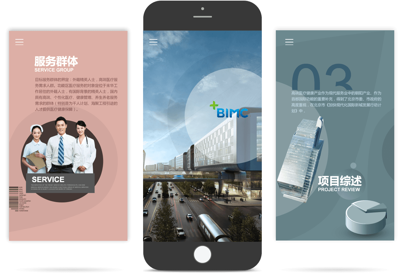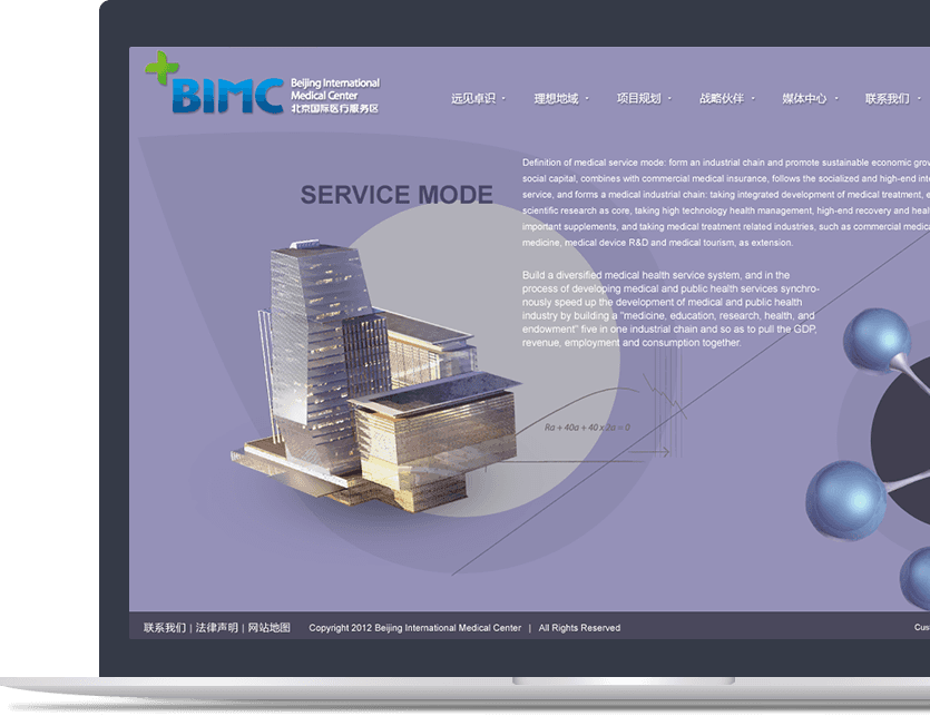 網(wǎng)站利用視頻元素和FLASH技術(shù),實(shí)現(xiàn)三維立體的動(dòng)畫表現(xiàn),展示北京國(guó)際醫(yī)療服務(wù)區(qū)全貌,形成強(qiáng)烈的視覺感受,塑造北京國(guó)際醫(yī)療服務(wù)區(qū)的品牌形象。同時(shí),網(wǎng)站中大量鼠標(biāo)交互效果,充分調(diào)動(dòng)訪問者的興趣,提升用戶的瀏覽體驗(yàn)。