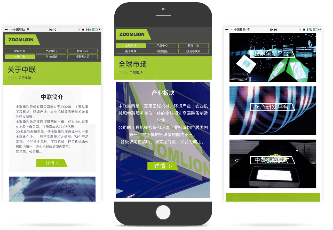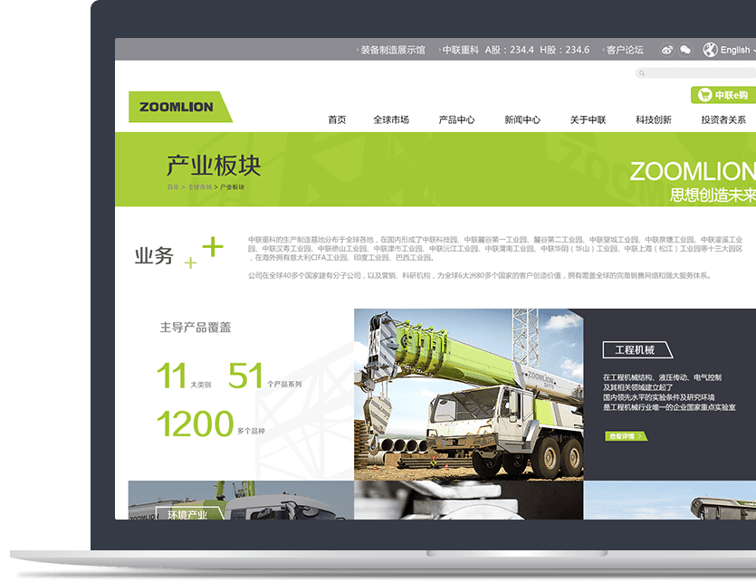 新鴻儒為中聯(lián)重科打造現(xiàn)代化、科技感的集團(tuán)官網(wǎng)——以國(guó)際流行的扁平化和色塊方格的長(zhǎng)布局為核心,通過錯(cuò)落排版的圖片 色塊相對(duì)均勻地吸引用戶的注意力,并以扁平化的處理方式讓每個(gè)元素更加易用、易辨識(shí),突出核心內(nèi)容。