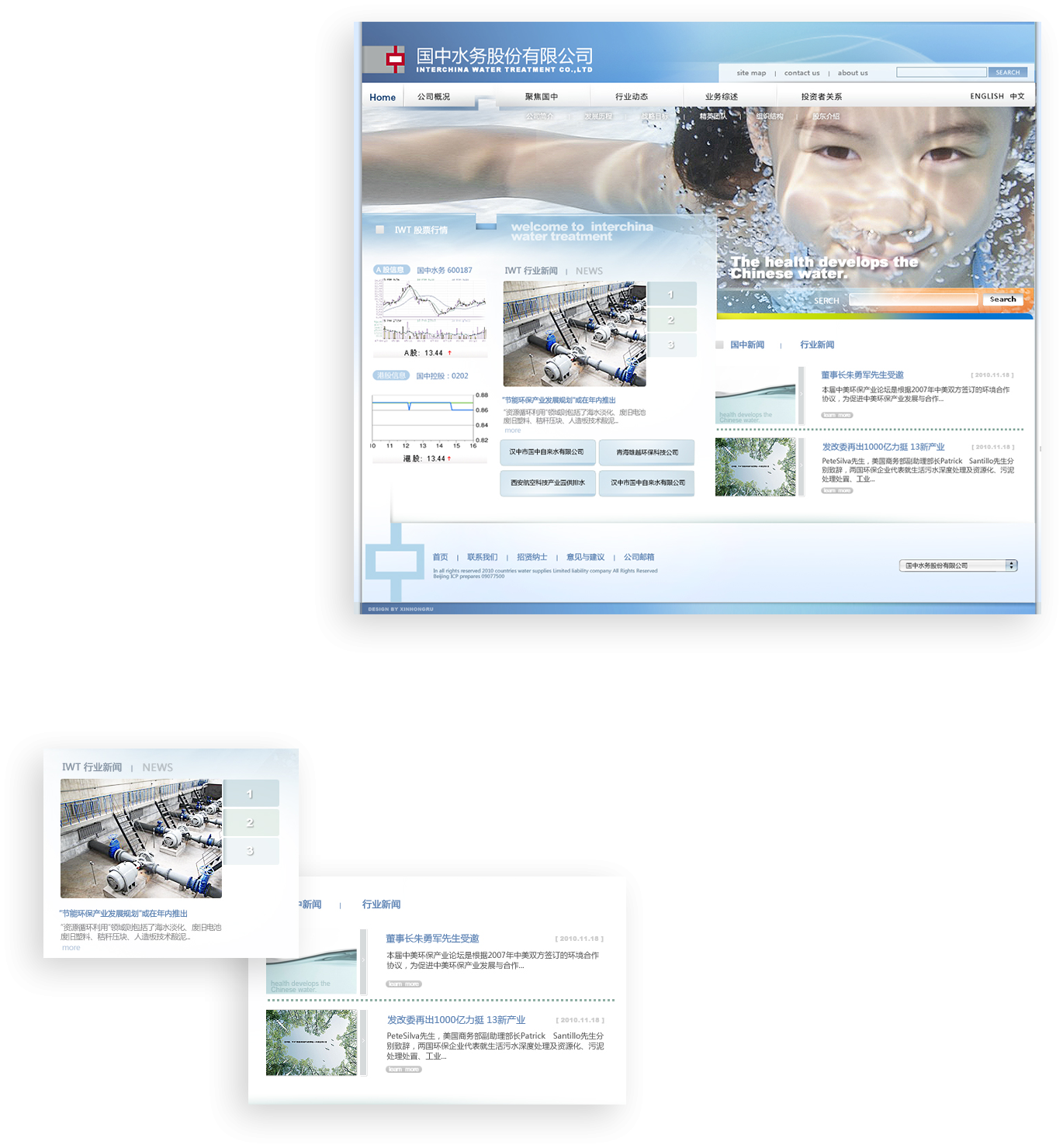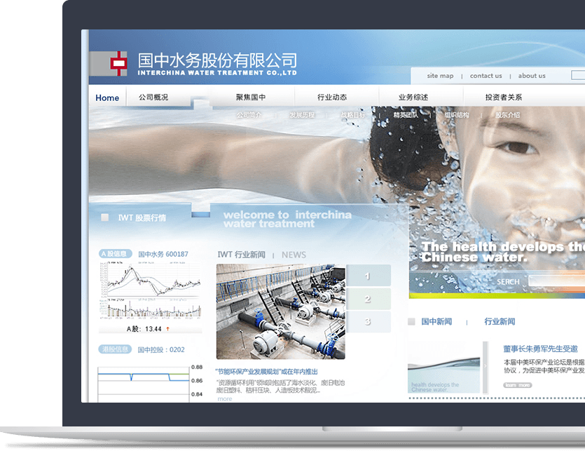 新鴻儒持續(xù)為國中控股、國中水務(wù)打造官方網(wǎng)站,在兼顧同一體系內(nèi)企業(yè)的視覺統(tǒng)一性的基礎(chǔ)上,通過不 同的表達方式塑造個性化的品牌官網(wǎng)