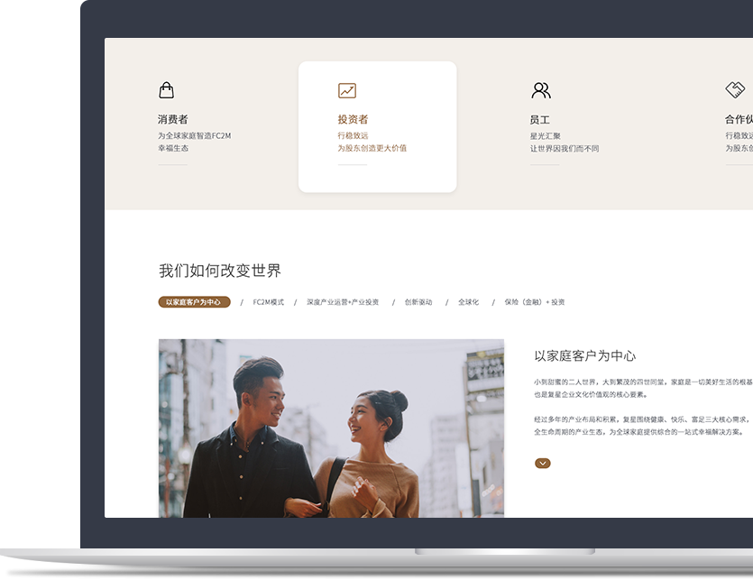 創(chuàng)立于1992年,復(fù)星深耕健康、快樂(lè)、富足、智造四大板塊,為全球家庭客戶 提供高品質(zhì)的產(chǎn)品和服務(wù)。