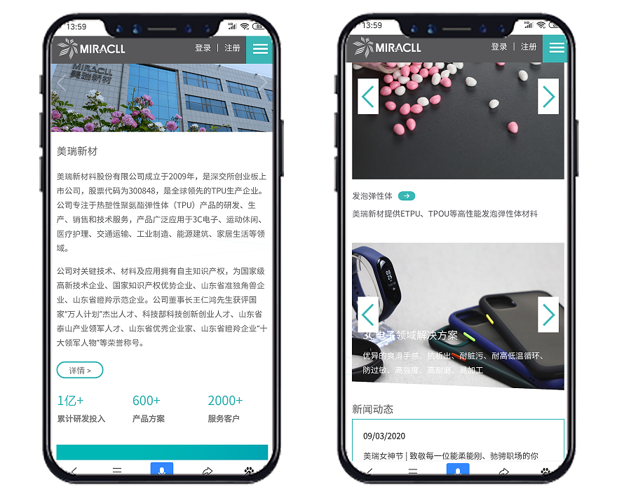 專項(xiàng)小組通過(guò)對(duì)深入調(diào)研,明確美瑞新材料的主要產(chǎn)品構(gòu)成和產(chǎn)品信息,也對(duì)美瑞新材料的企業(yè)文化與企業(yè)精神有了深入了解。因此在欄目布局方面,首頁(yè)整體采用極簡(jiǎn)化設(shè)計(jì)風(fēng)格,通過(guò)對(duì)企業(yè)目標(biāo)和價(jià)值觀的展示,突出科技感及領(lǐng)先性,同時(shí)網(wǎng)站采用響應(yīng)式技術(shù),滿足PC端、手機(jī)端、paid端多終端適配,符合當(dāng)代移動(dòng)互聯(lián)網(wǎng)用戶使用體驗(yàn)。