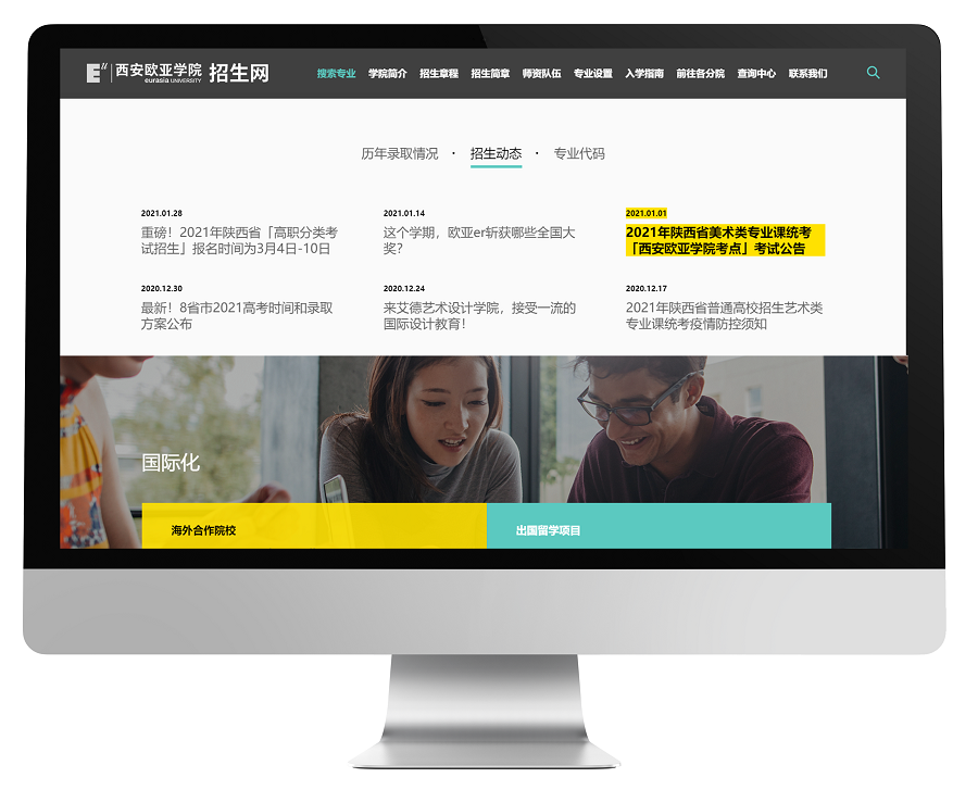 本次項(xiàng)目主要目的是通過對(duì)招生網(wǎng)站的升級(jí),面對(duì)互聯(lián)網(wǎng)環(huán)境下成長的全新一代準(zhǔn)大學(xué)生進(jìn)行品牌宣傳,提升西安歐亞學(xué)院品牌形象、擴(kuò)大品牌聲量、最終提升招生工作。新鴻儒服務(wù)西安歐亞學(xué)院已有11年,為數(shù)字化校園系統(tǒng)提供迭代更新、系統(tǒng)升級(jí)、各平臺(tái)系統(tǒng)的融合擴(kuò)展工作,得到了院方各領(lǐng)導(dǎo)的高度認(rèn)可與支持。